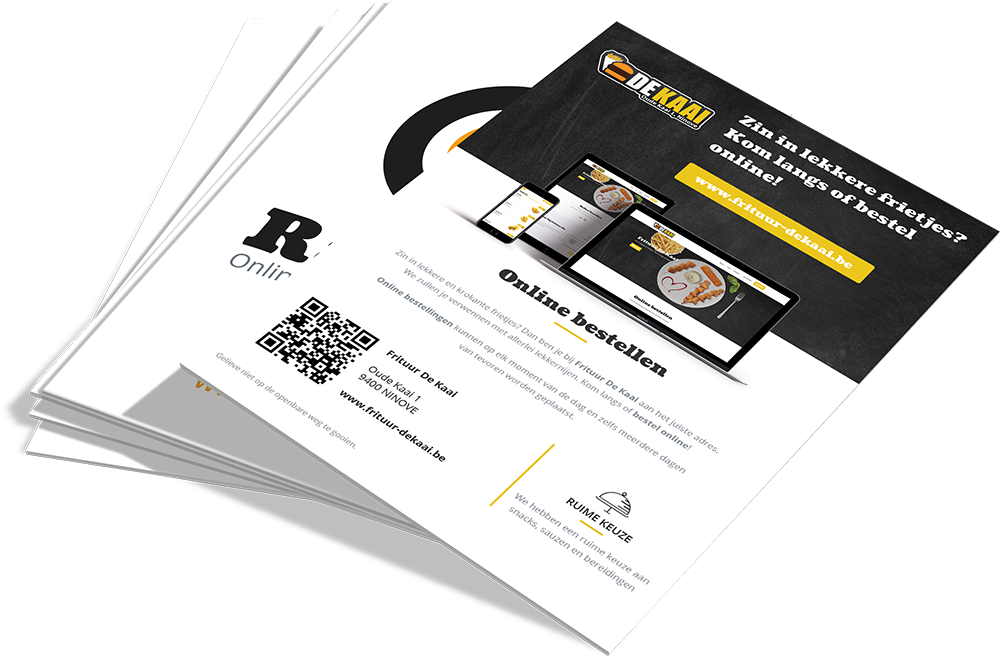 Wil je naast het gratis drukwerk nog ander drukwerk laten maken zoals menukaarten, promotiefolders, reclamebanners, stickers, ... ?